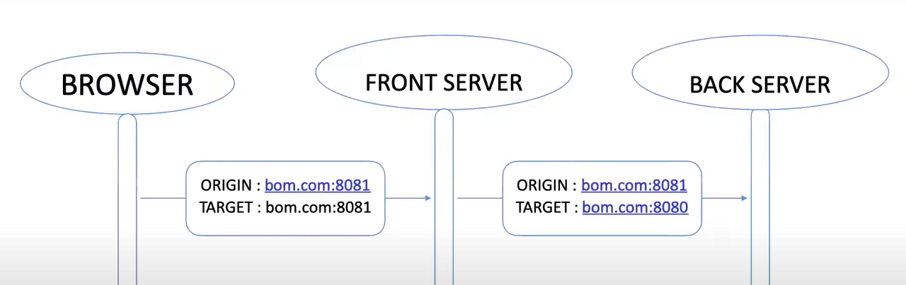 - 프론트 프록시 서버에서 백엔드 서버 간의 출처를 조율해줍니다