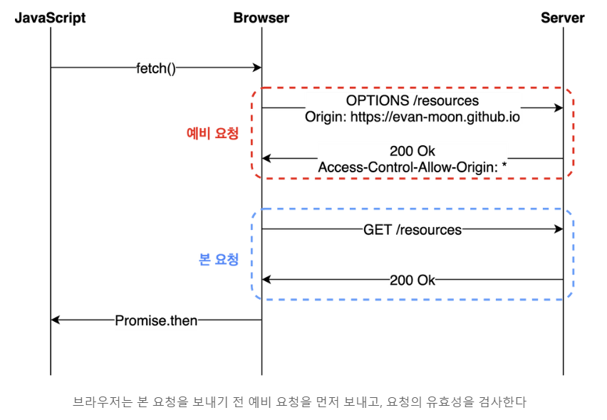 브라우저는 기존에 진행했던 Origin <-> Access-Control-Allow-Origin 비교 외에도 추가적인 검사를 진행합니다