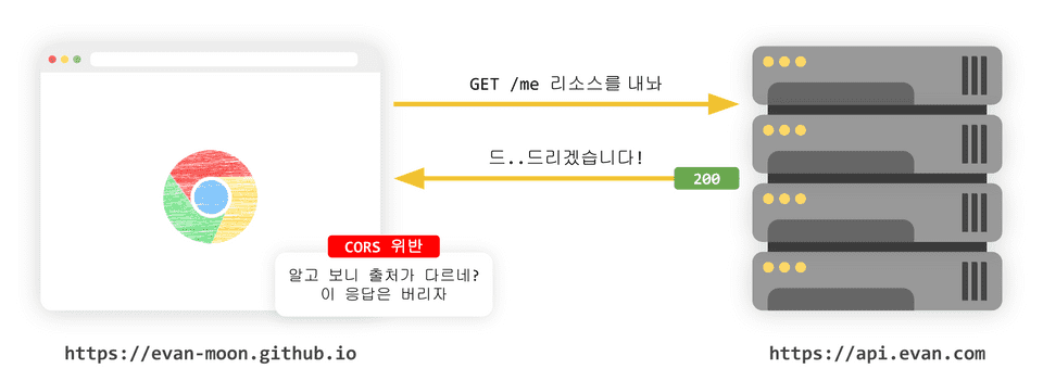 위의 예시같이 브라우저에서는 요청과 응답을 통해 본 요청이 유효한 지 판단하는 메커니즘을 갖고 있습니다