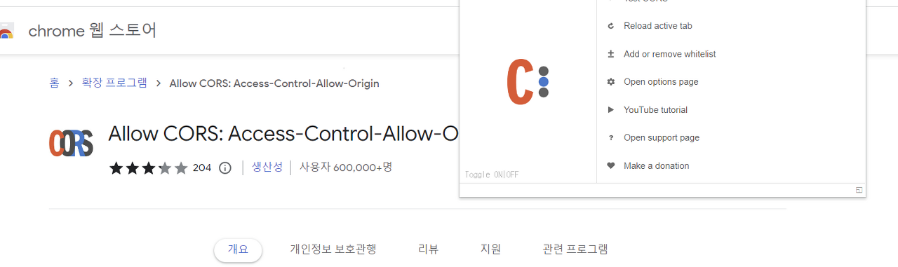 3. CORS를 허용하게끔 도와주는 확장 프로그램을 다운로드합니다
