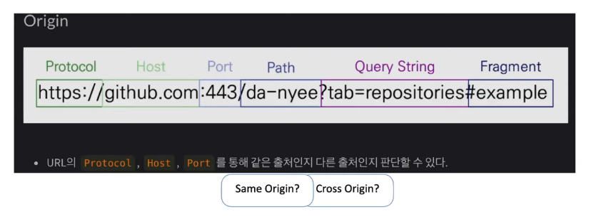 - 출처는 Protocol + Host+ Port 의 쌍을 말합니다